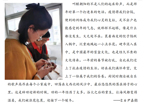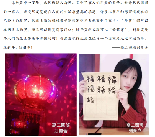 从欢庆祥和的剪纸、贴福到喜气临门贴春联,从阖家团圆的年夜饭到保佑平安的压岁钱……团圆、喜庆、祝福始终是“过年”不变的精神意蕴和文化内核。牛年“犇”来,丰富多彩的“春节”民俗文化正在大工附高学子中传承,迸发蓬勃力量,焕发时代光彩。