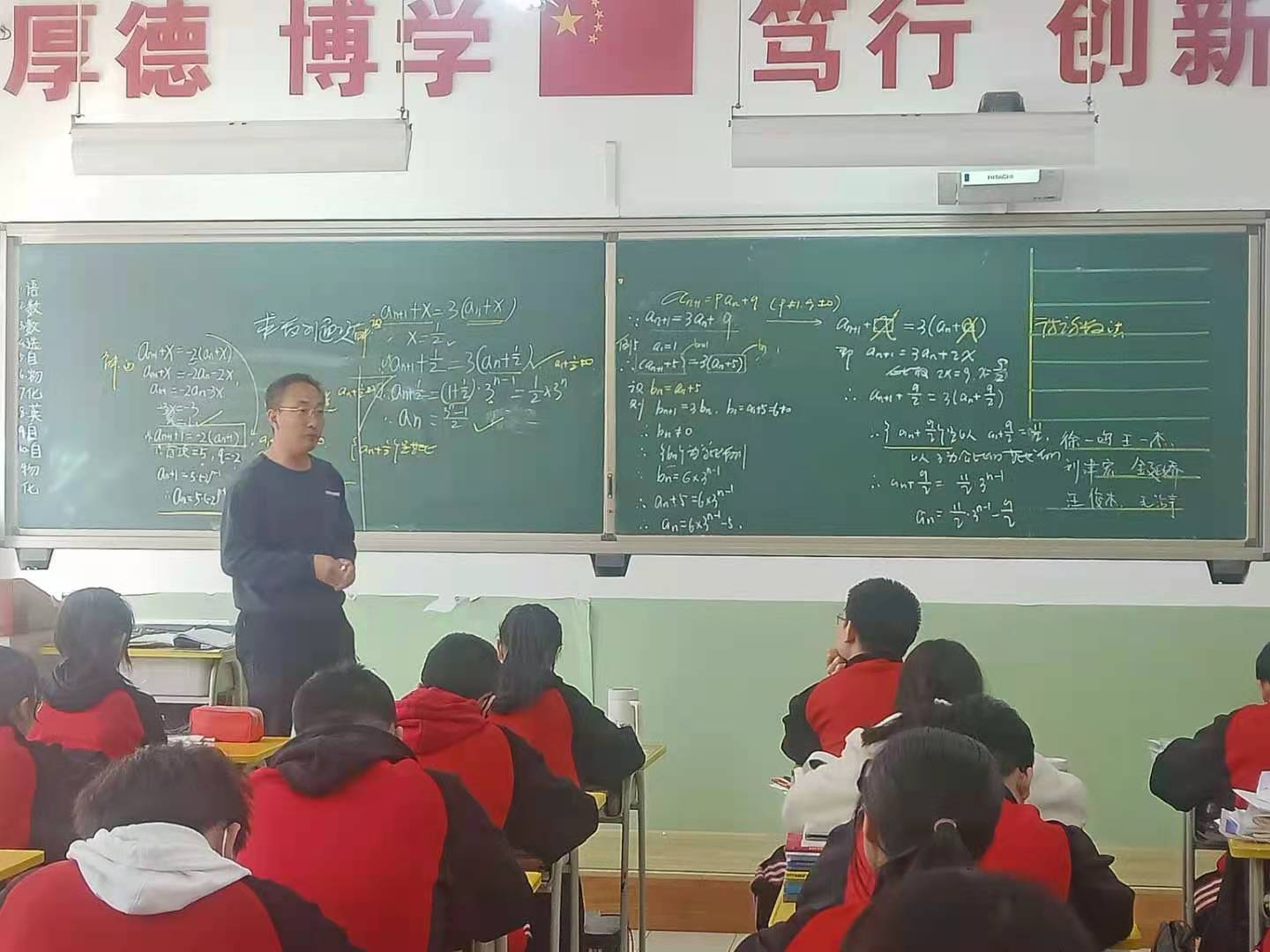 高二数学第一节展示课由赵永新老师授课。赵永新,高二数学备课组长,1996年毕业于辽宁师范大学。大连市甘井子区优秀教师,市级骨干教师。多次参与教材编写、课题研究,指导多名学生参加数学竞赛获奖。在教学中善于引导学生进行探究,注重发展学生的数学思维,提升学生的数学素养。在本次的“同课异构”展示课中,赵老师根据学情,精心准备习题,由浅入深,引导学生进行探究,最终总结出一类通项公式的求解方法,取得良好的教学效果。