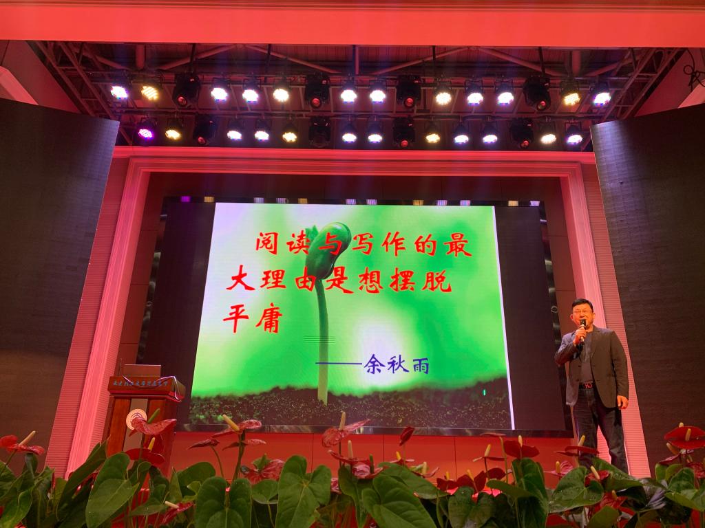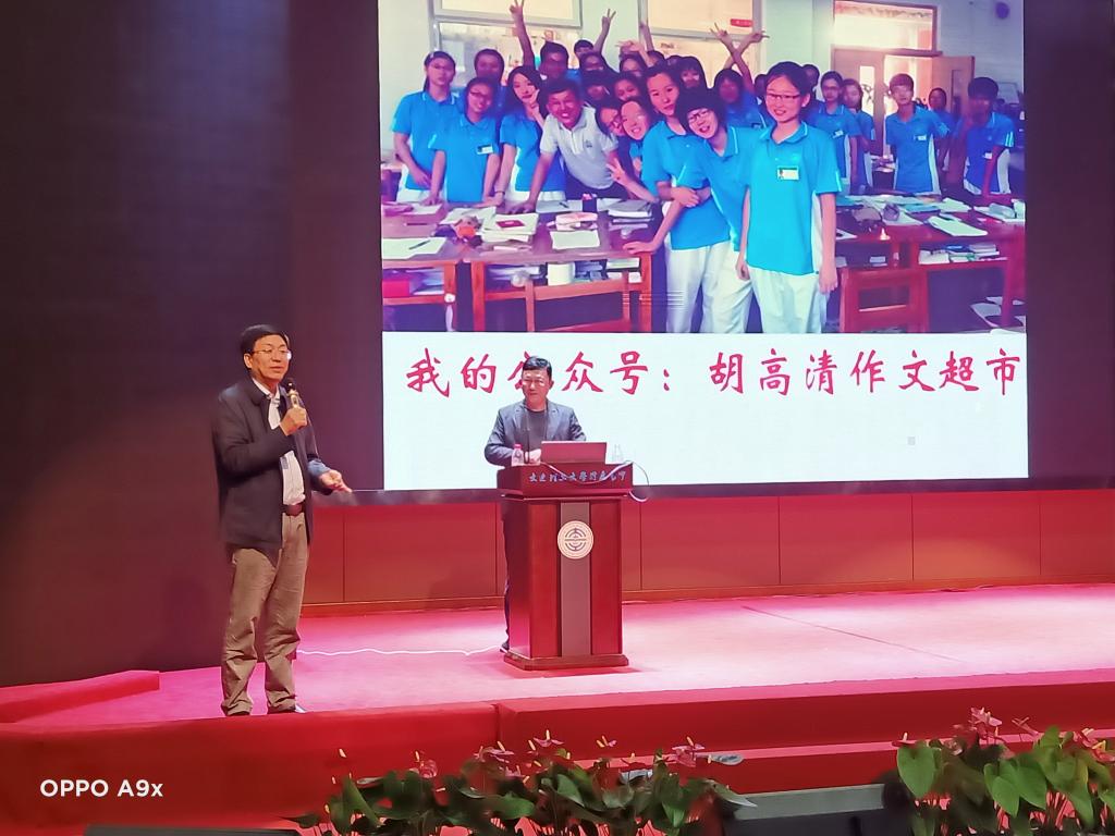 6月16日下午,受党总支书记、校长赵军同志盛情邀请,语文特级教师胡高清老师莅临我校,为即将迈入高三的学生们带来了一场题为《阅读与写作生命之彩蛋》的精彩讲座。