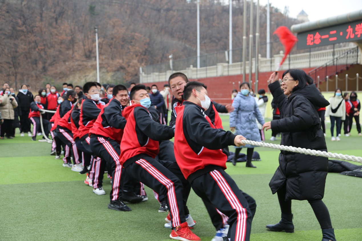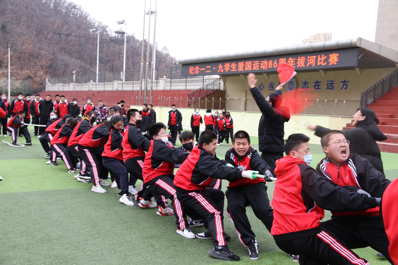 为纪念一二·九学生爱国运动,弘扬爱国主义精神,丰富学生的课余文化生活,提高学生的身体素质和竞技意识,自12月15日起,冬季拔河比赛在大工附高操场鸣笛开赛。