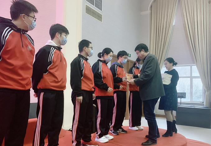 常务副校长马志科为获奖学生颁奖。