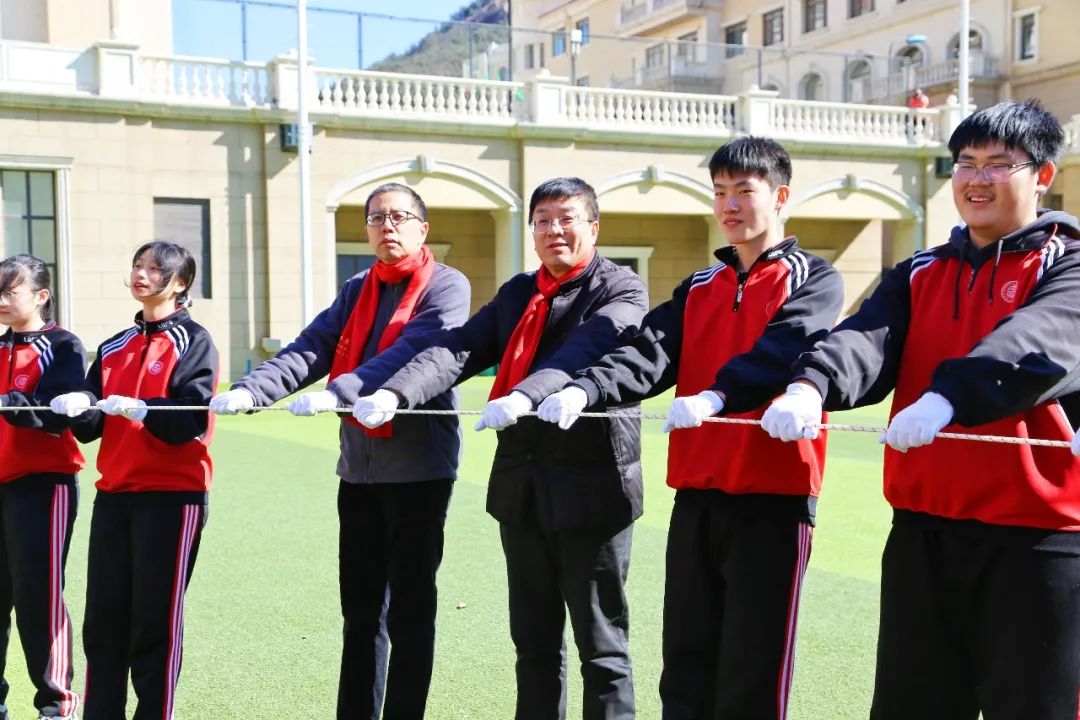 高三全体师生共同把绳子围成一个圆满富有张力的大圆。这个大圆里包含着信任,团结,感恩,坚持……大家心往一处想,劲往一处使,共同舞动手中的圆梦圈,同心同梦,共赢高考。