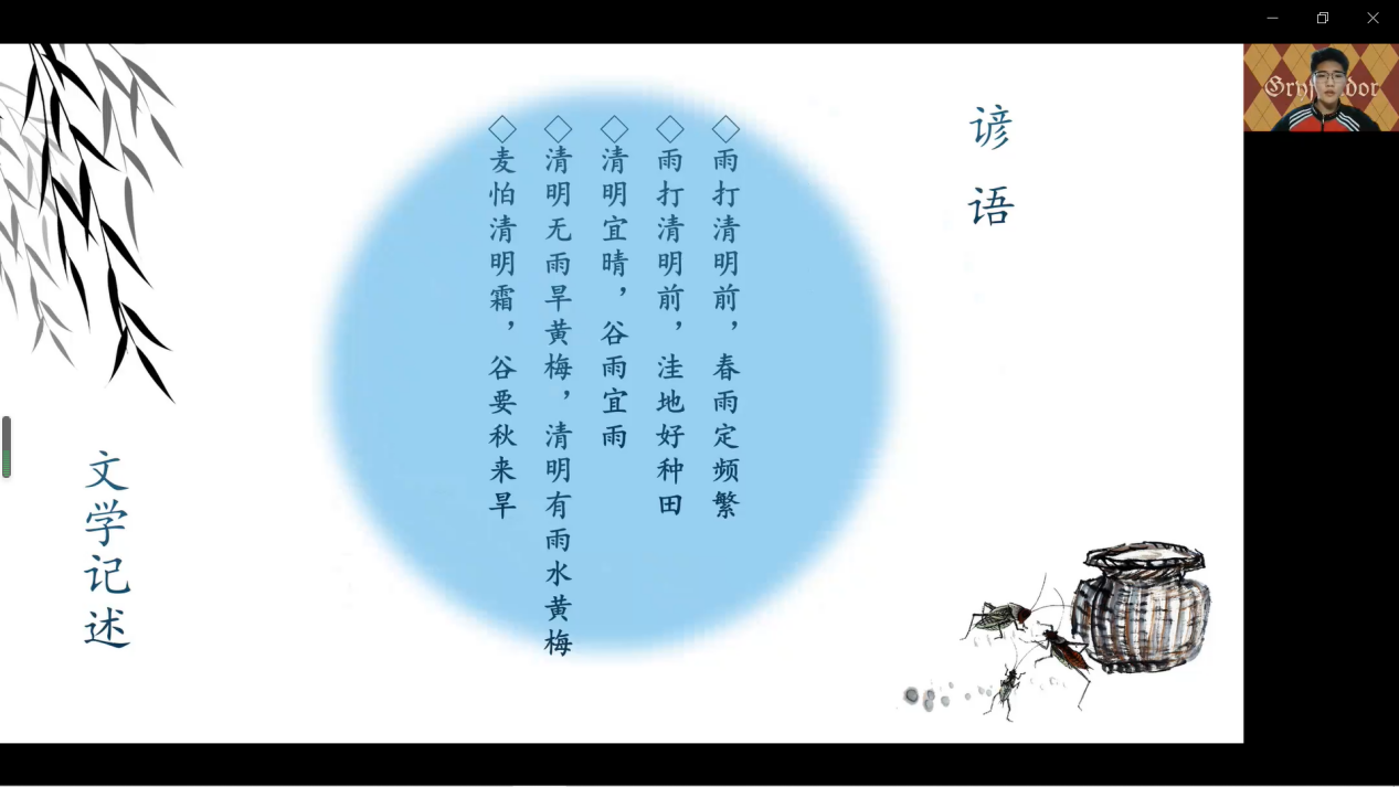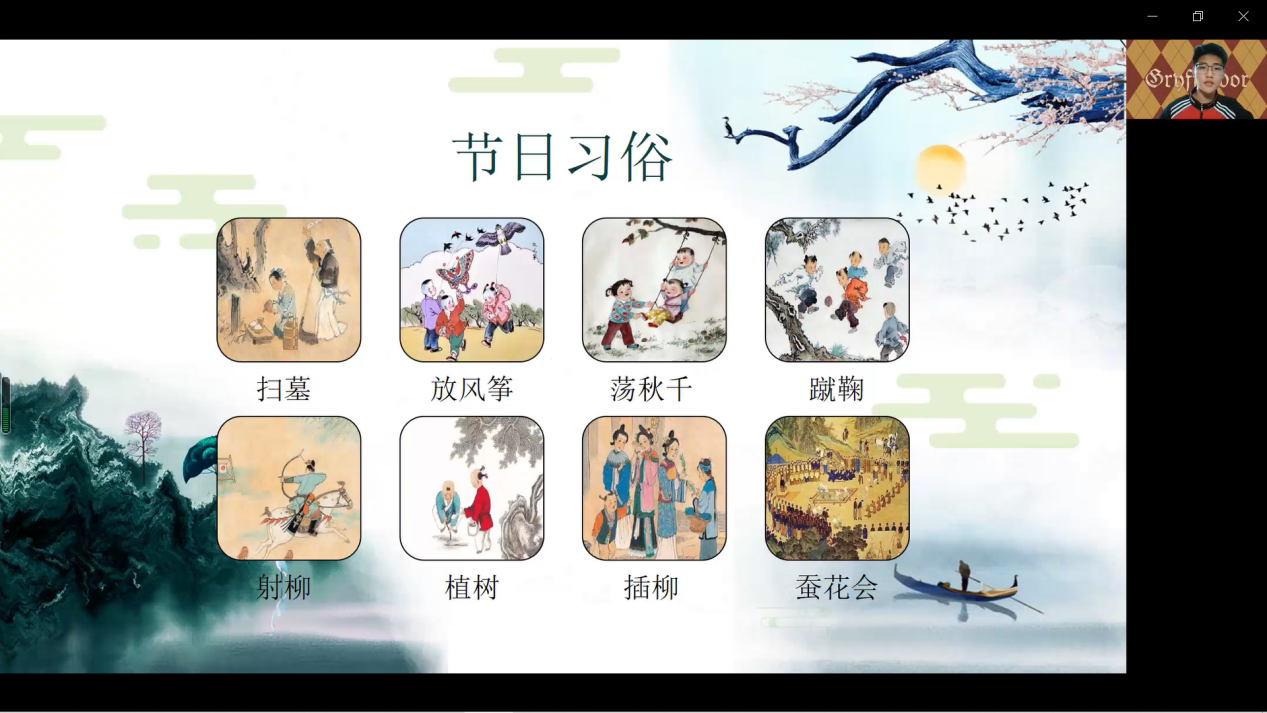清明节历史悠久,自古以来,许多文人墨客都喜爱以诗歌来记述清明。如我们都熟悉的“清明时节雨纷纷,路上行人欲断魂。”这些诗歌,是我们瑰丽的宝藏,为清明添加了厚重的文学色彩。齐兴书与赵哲同学也准备了两首他们所喜爱的诗歌与同学们分享。