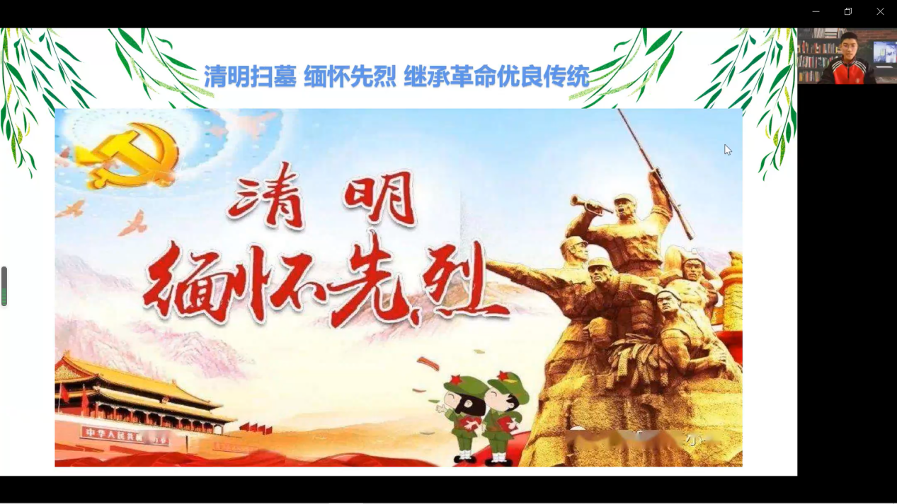 清明节是我国祭奠故人、寄托哀思的传统节日,也是缅怀先烈、继承遗志的重要时节。正值清明时节,在全国上下齐心战“疫”之时,我校各班线上开展了“感受清明文化,缅怀革命先烈”的主题班会。