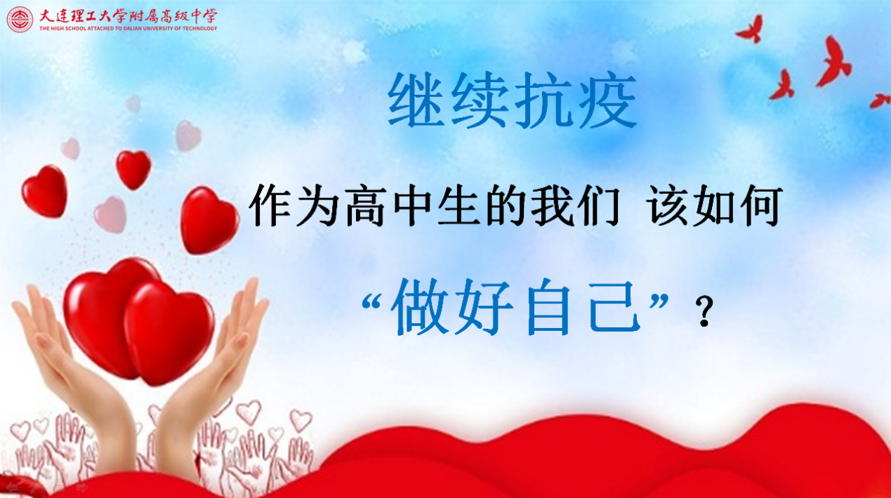 此次班会的主题是“战疫继续,做好自己”。在这个疫情烽烟四起的特殊时期,为了确保广大师生的健康和安全,大连市疫情防控总指挥部发布了线上教学的命令,并积极开展抗击疫情的相关工作,在情况略微好转之时,却又异变突生。在情况尚未明朗之时,我们应当做好自己,保护好自己的人身安全,调控好情绪。只要我们齐心协力同舟共济就定能击败疫情,共赏人间最美四月天。