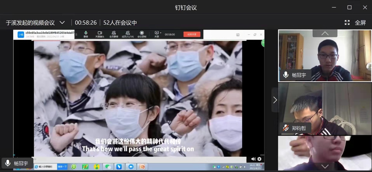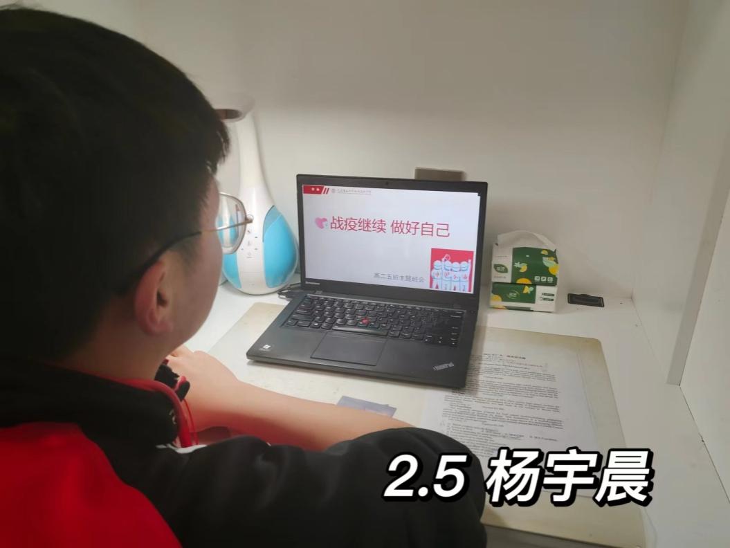 这次班会在马主任的讲话中开始举行。疫情,多么熟悉的词汇,已经跟随了我们三年,它见证着我们的成长,无论是我们从小长到大,还是我们从对它一无所知到全市核酸检测一天内出结果,这都是我们的成长。而对于如今高二下半学期的我们而言,虽然我们居家,但学习不可耽误。马上部分学科的一轮复习即将到来,而高考也在向我们招手,我们必将全力以赴,打赢疫情防控阻击战。