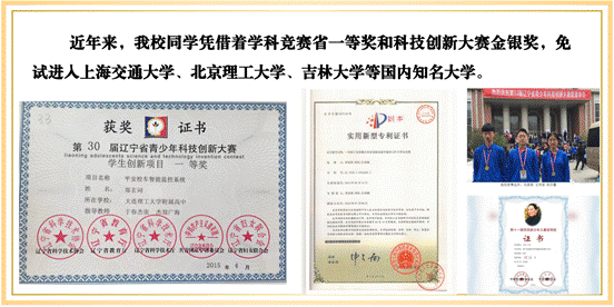 段同学凭借全国科技创新大赛金奖,被上海交通大学录取;石同学凭借全国科技创新大赛银奖,被北京理工大学录取;于同学凭借全国科技创新大赛金奖,被四川大学录取;任同学斩获国家级专利(一种基于电容耦合的非接触电能传输的LED灯供电电路)被中央财经大学录取。