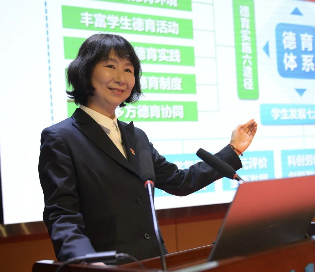 德育主任李满以“立德树人,五育并举”为题,通过德育工作“八段锦”对德育工作进行讲解,以此促进相互沟通、相互学习、共同进步,做幸福的德育人。