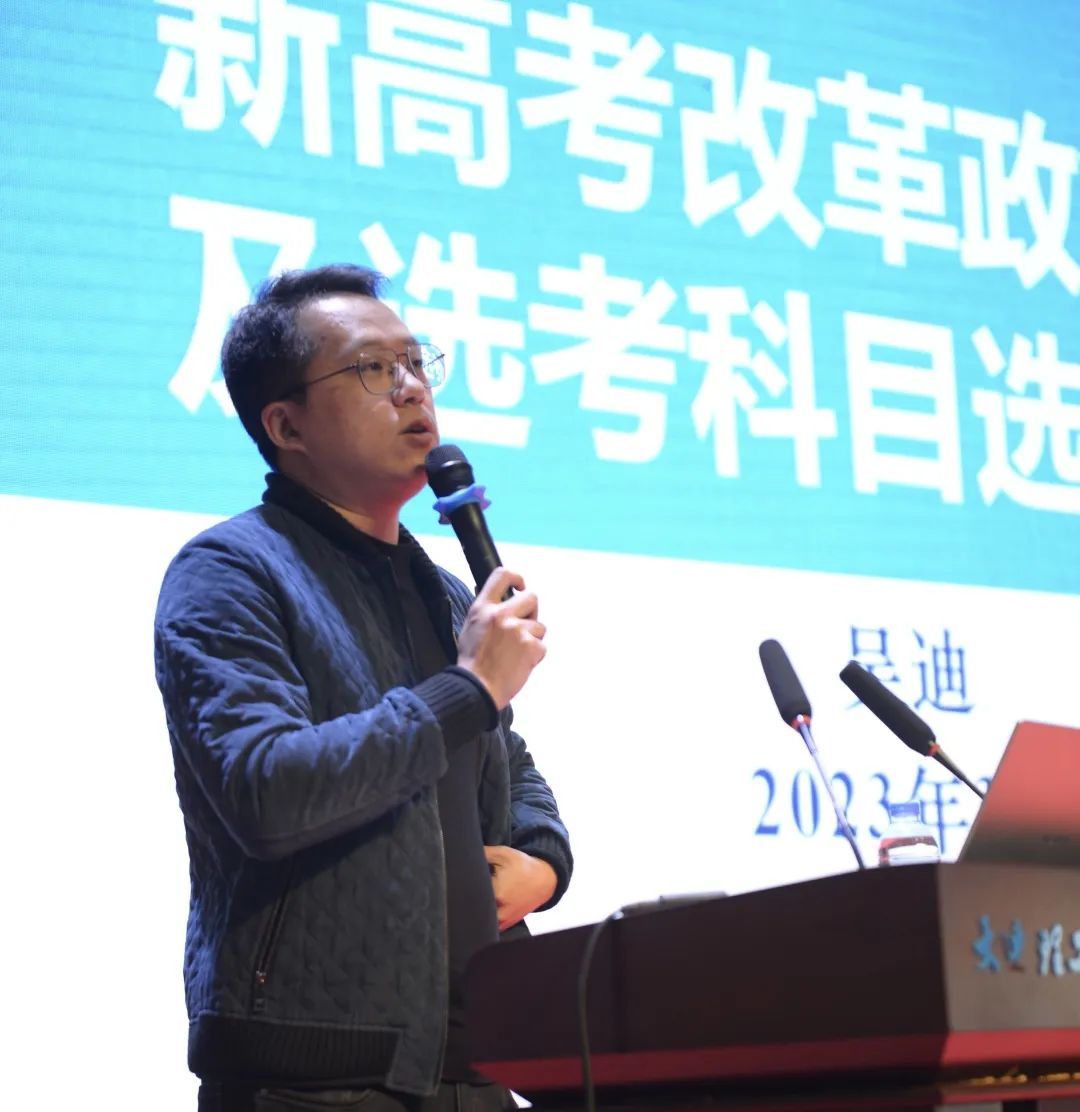 大连理工大学招生办公室主任吴迪做“新高考改革政策解读及选考科目选择指导”讲座。吴迪老师从新高考改革的开展背景及意义开始讲解,详细地介绍了新高考改革政策的时间线、主要内容等,让培训班学员深入地了解新高考改革。之后详细讲解如何正确选科和选专业。建议高考志愿填报要把握大方向,重点关注专业和地域。随后分国家重点支持领域和基础学科领域两部分介绍了未来的热点专业。