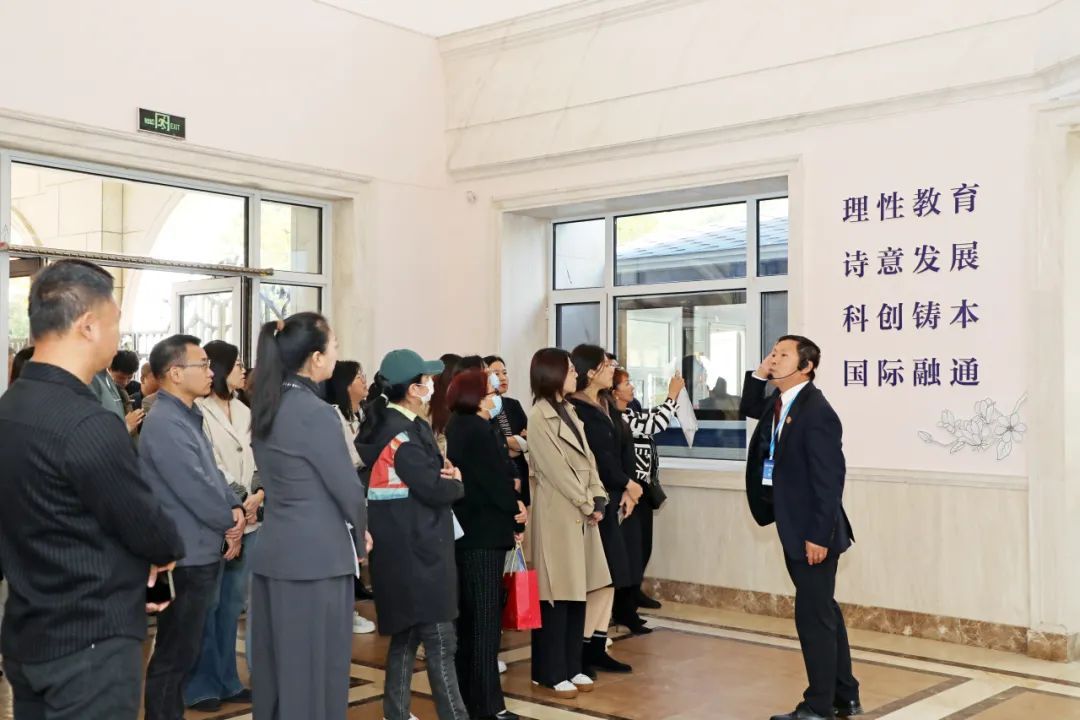 石磊副校长带领参会老师们参观校园文化,精心介绍和阐释科创特色校园文化建设理念与内涵。