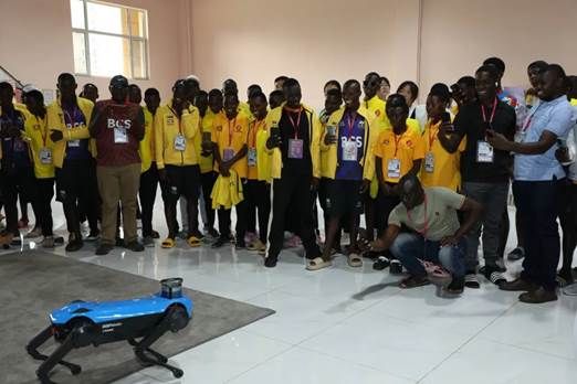 我校机器人社团的师生向来访团展示了社团特殊成员——仿生机器狗,机器狗展示各种高难度动作及复杂的协作动作等,引得队员们纷纷走近仔细观察和互动,让不同文化背景的两国学生在科技的纽带引领下拥有了更多话题。现场气氛热烈而活跃,向访团成员展示了我校的科技特色亮点。