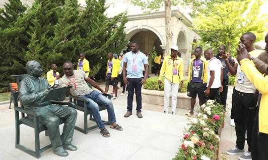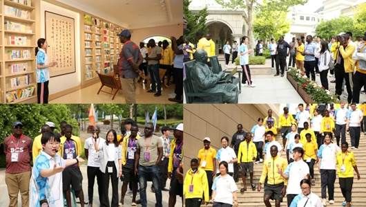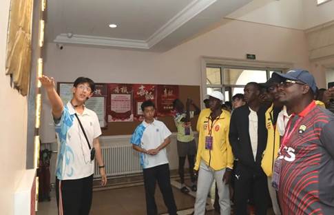 在学生校园讲解团全英文讲解过程中,我校学生与乌干达队员一对一结对子,协助队员们了解我校校园文化。学生们热情地为他们讲解校园的历史、建筑风格、日常活动等,从每一个细节处展现校园的魅力与活力。