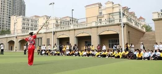 来访团成员共同欣赏了高一七班于子涵同学带来的武术表演,大家连连拍手称赞,表示这是一场精彩的表演,也非常喜欢中国武术。