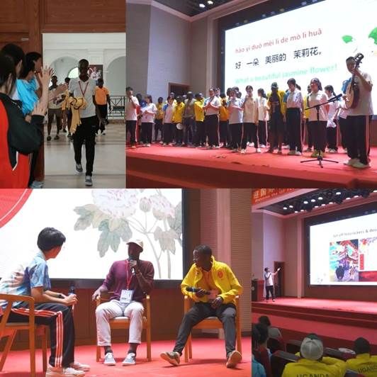 在交流会活动中,大家坐在一起,分享着彼此的故事和经历。乌干达队员们讲述着他们在赛场上的拼搏与激情,并欣赏中国学生弹奏古典乐器——阮,学习歌唱中国歌曲《茉莉花》;中国学生们分享着校园生活的点滴乐趣;大家互相讲述自己国家的特色节日,体验着不同文化的差异带来的乐趣。活动过程中欢声笑语不断,友谊在交流中迅速升温。