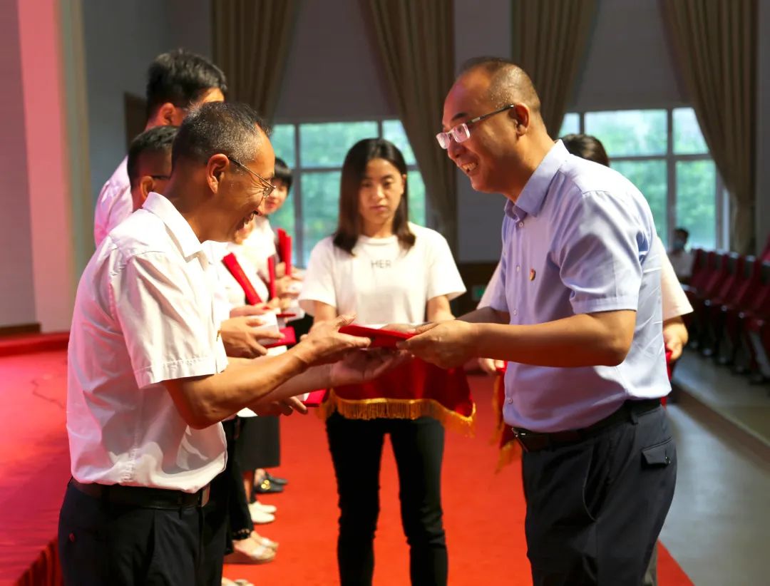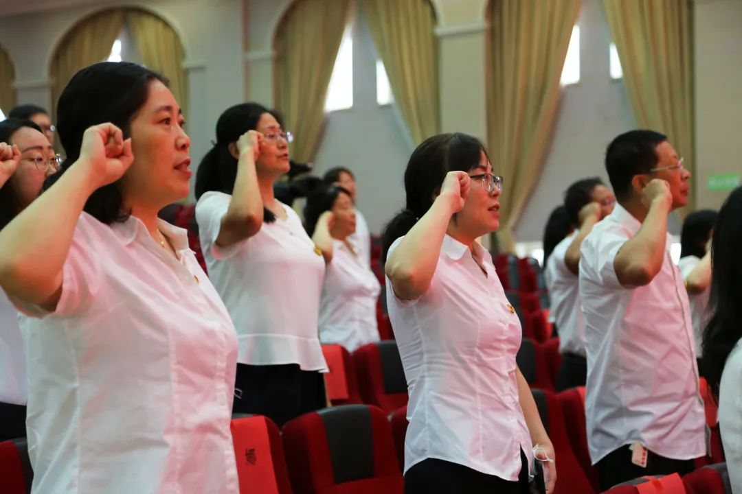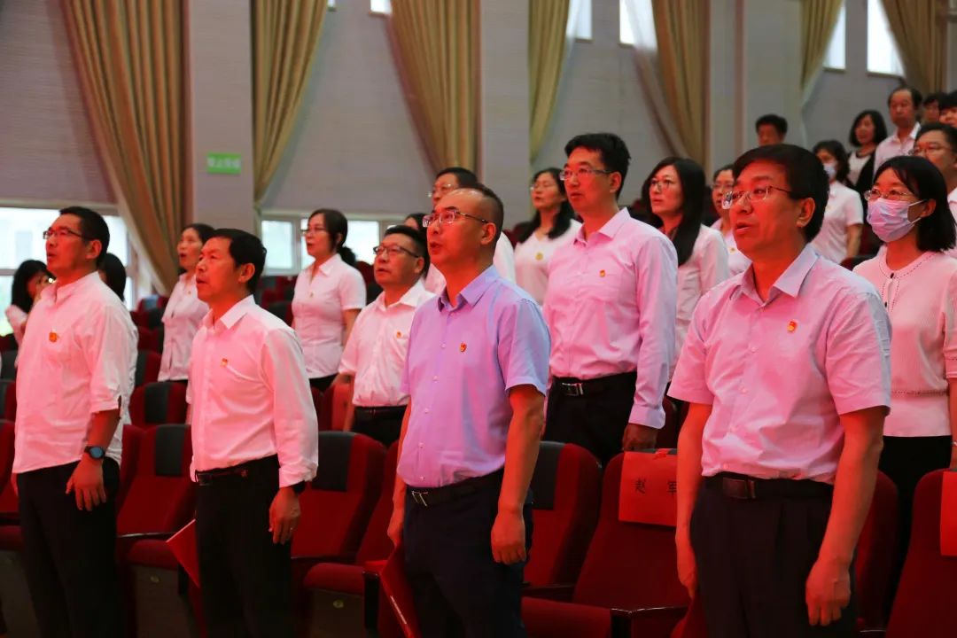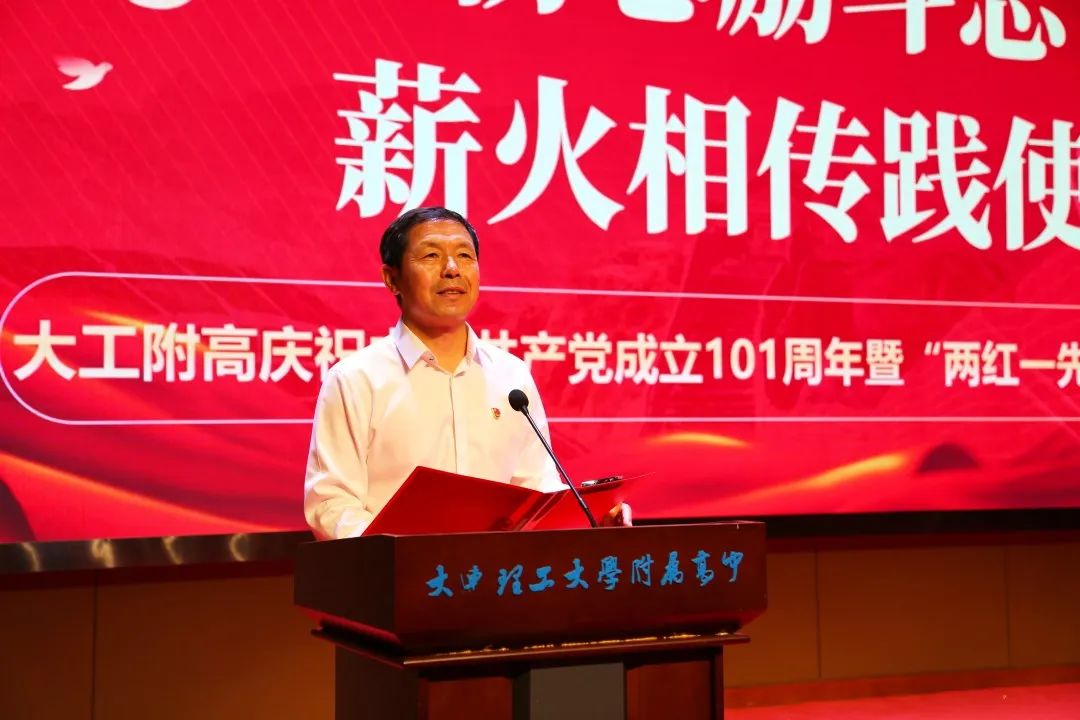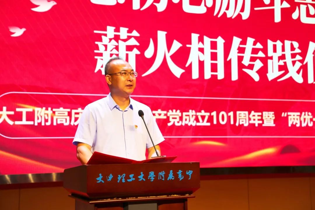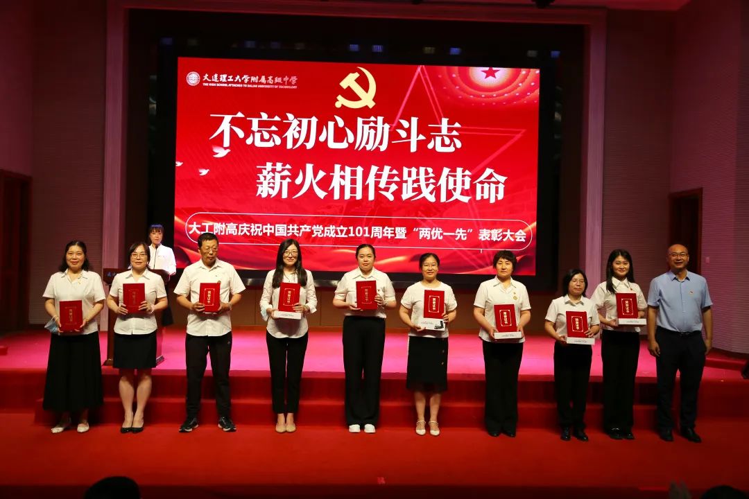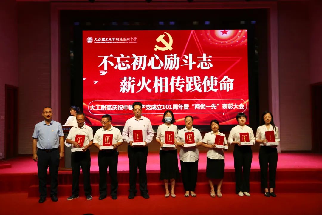 我校于7月1日下午在学校礼堂召开“不忘初心励斗志,薪火相传践使命”大工附高庆祝中国共产党成立101周年暨“两优一先”表彰大会。