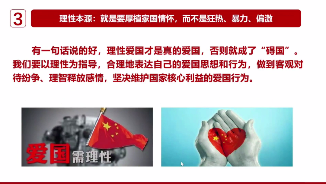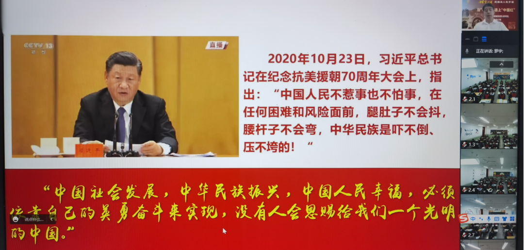 “中国无战事、军人有牺牲”体现了中国维和军人的爱国、责任、荣誉、担当,展示了中国军人守卫世界和平、视死如归的本色。赵佳明老师以“你所站立的地方,就是你的中国;你怎样,中国便怎样;你是什么,中国便是什么;你有光明,中国便不再黑暗”作为结尾,勉励同学们珍惜伟大祖国美好安定的生活,作为新时代青年学生,应当志存高远、忠于祖国,努力做新时代具有远大理想和坚定信念的爱国者。