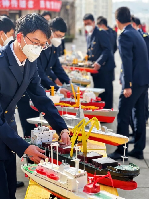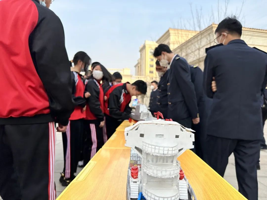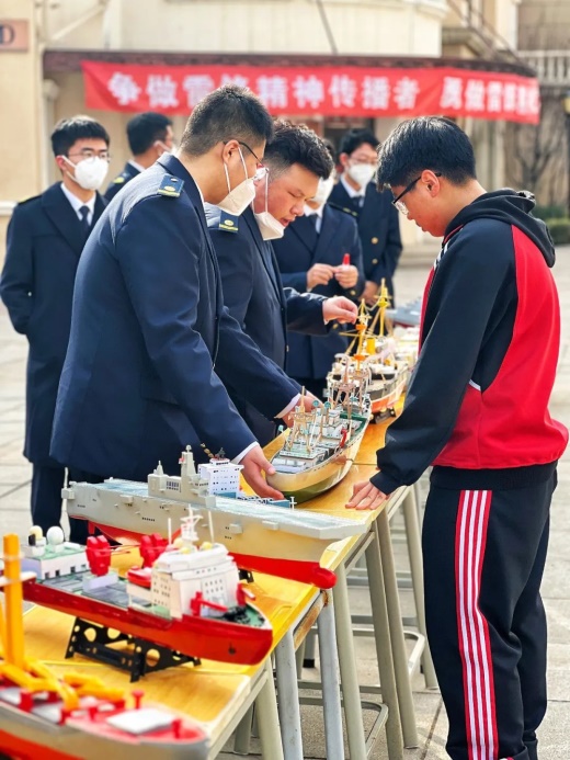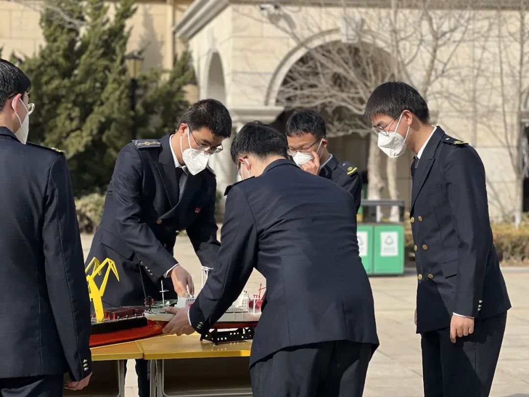 活动当天更有神秘嘉宾来到现场,大连海事大学船舶与海洋工程学院的老师和志愿者同学们,带着自己制造的船舶模型来到了活动的现场。我校团委与其联合创办船模制造社,不仅激发我校学生对船舶科技创新的兴趣,同时为我校学生唤醒蓝色基因、树立海洋意识打下了基础。