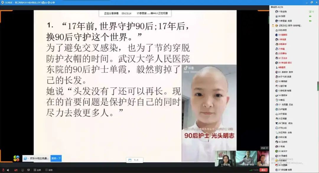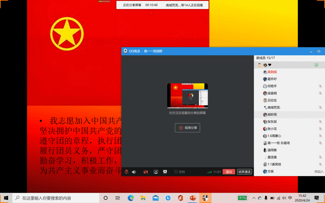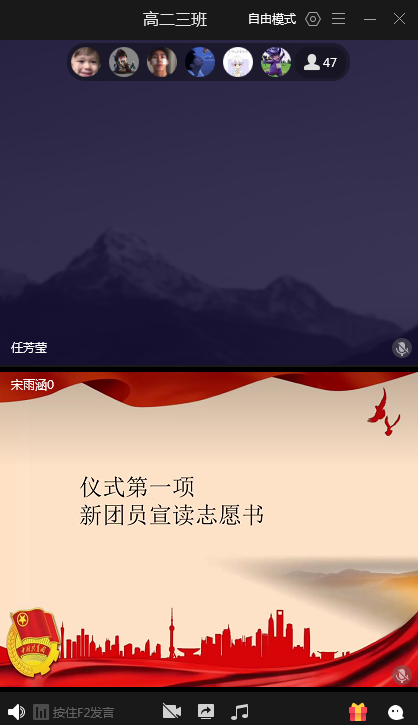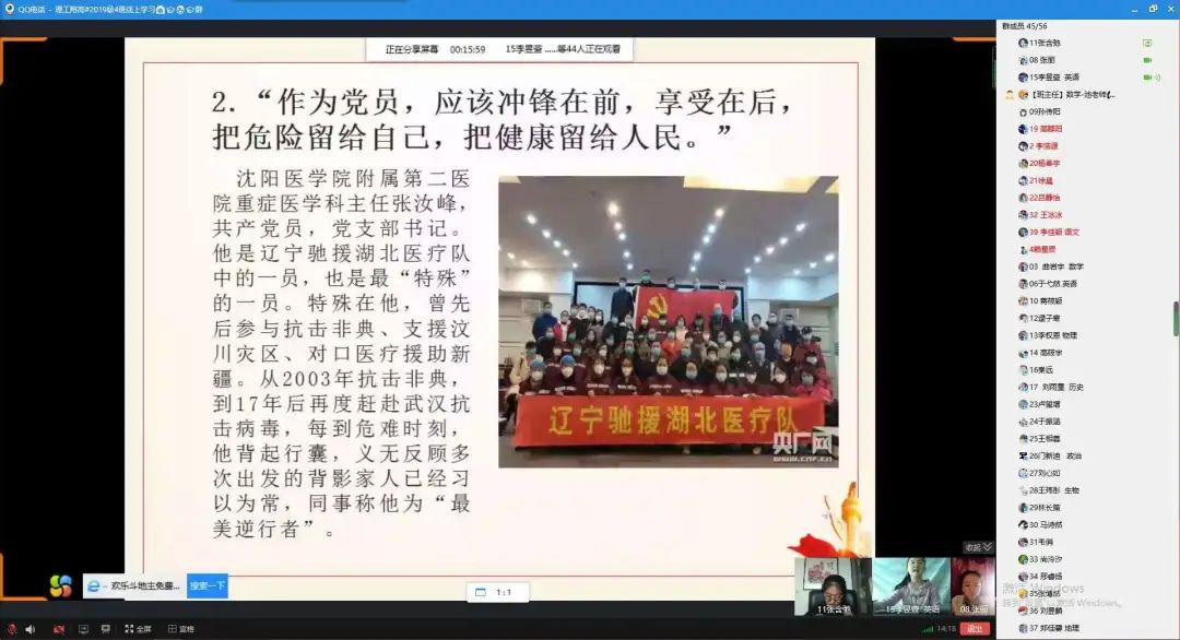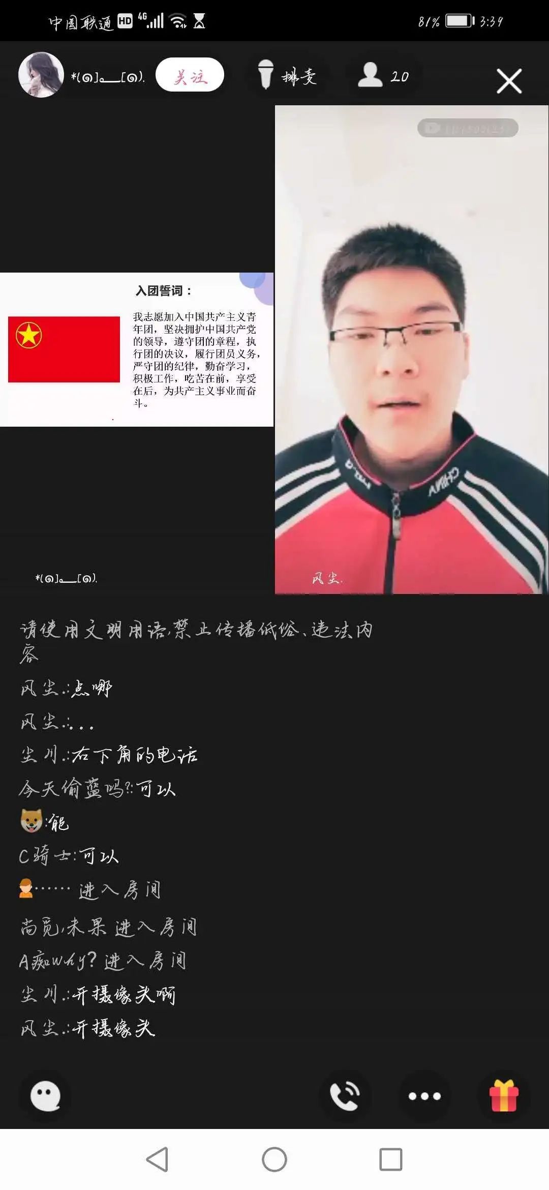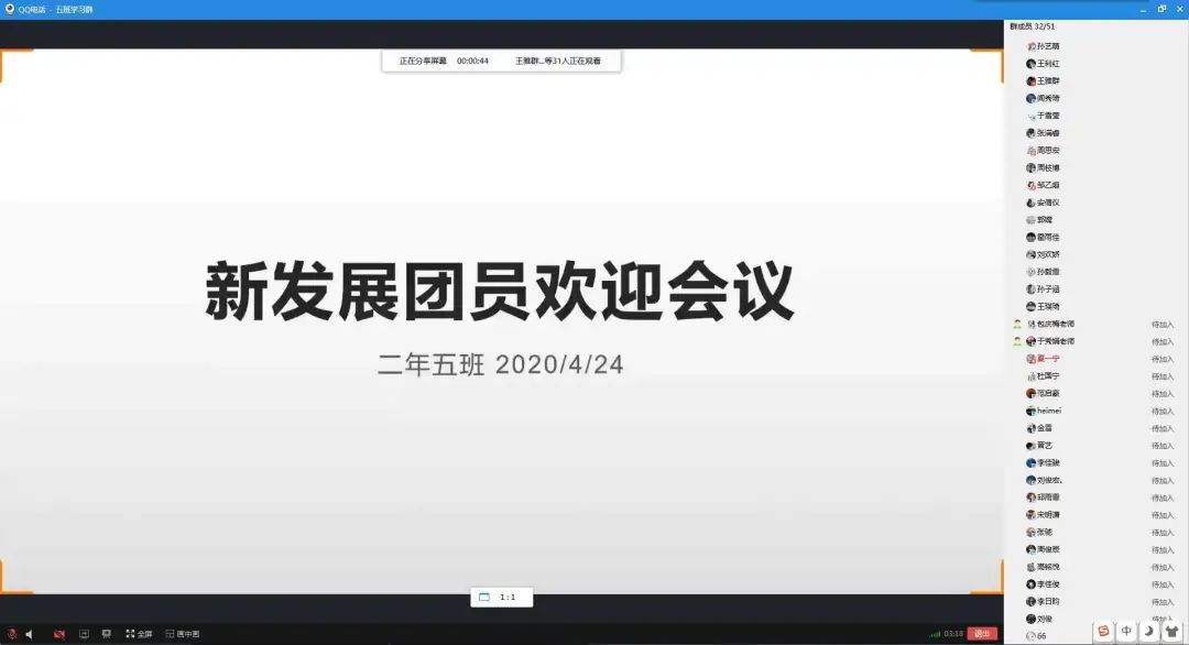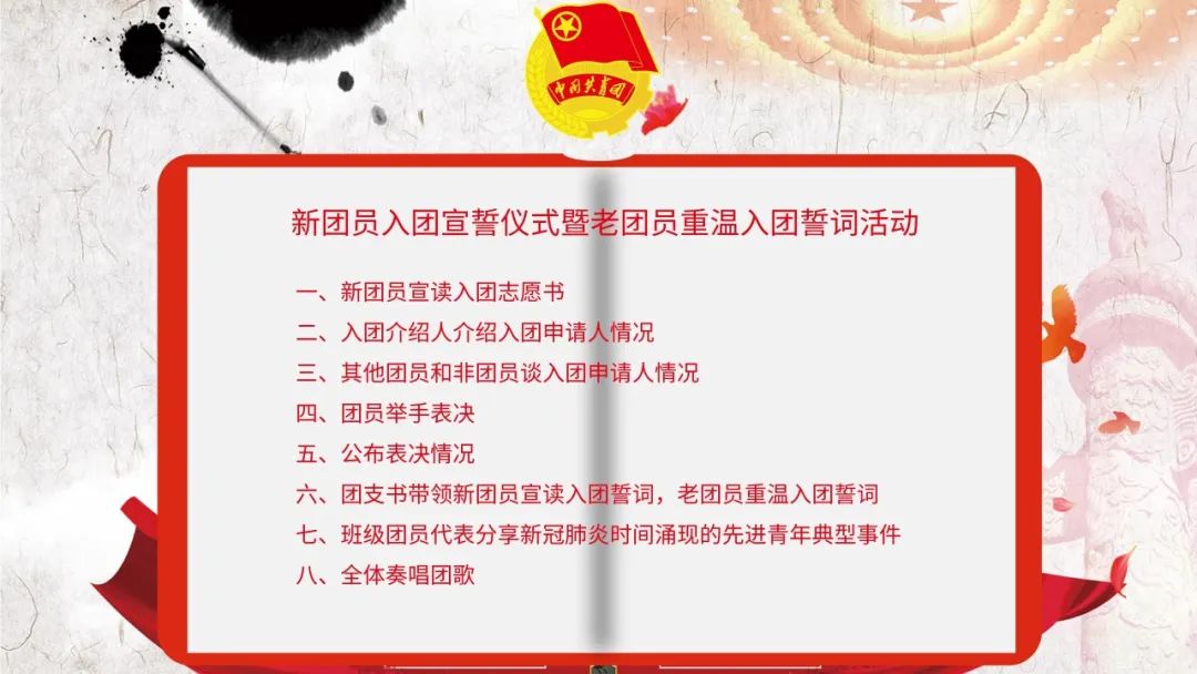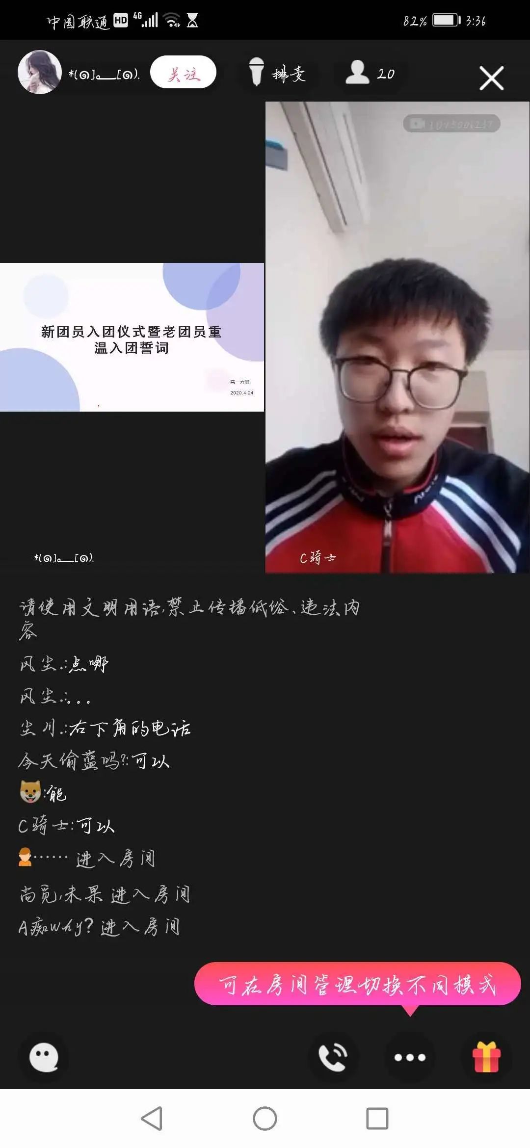 在这样一个特殊的时期,我校各个团支部采取“云入团”的方式,完成各支部新发展团员的入团仪式,同时在这样艰难的时期,带领老团员重温入团誓词。各班团员代表与班级同学分享新冠肺炎疫情期间涌现的先进青年典型事件,鼓励我校团员同学能够起到榜样作用,在疫情困难时期,起到先锋模范的带头作用。