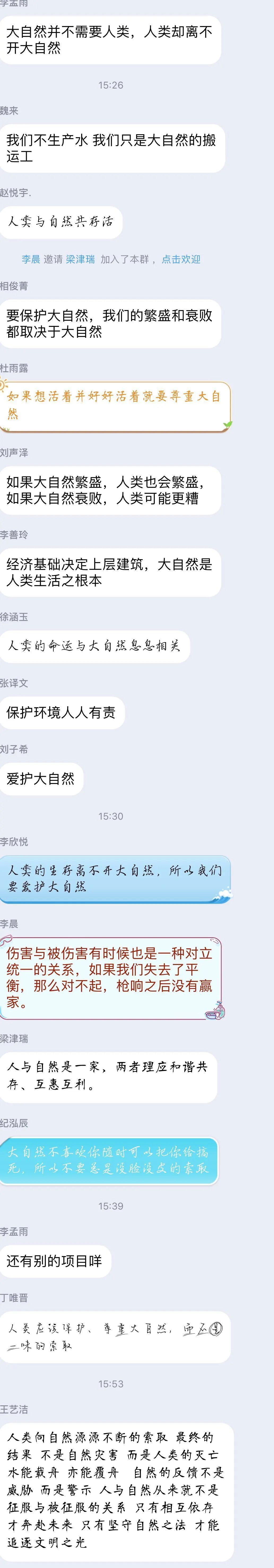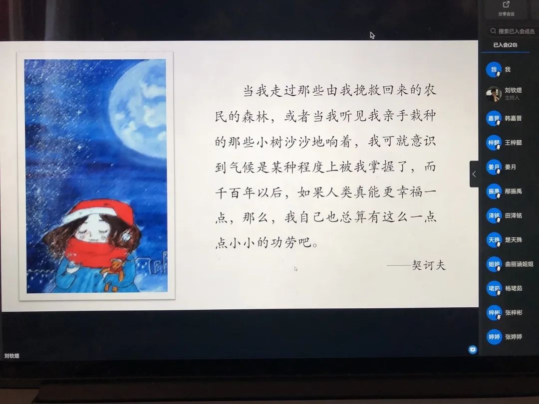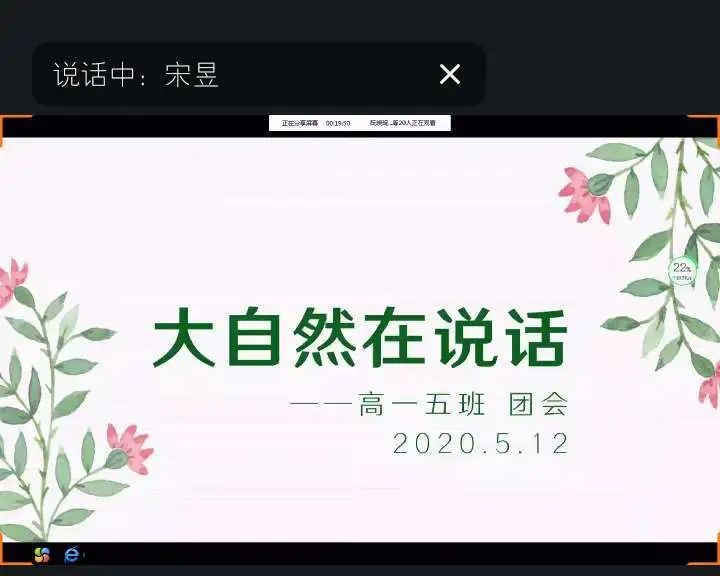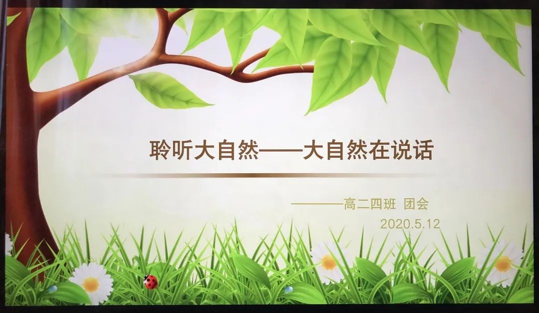 大连理工大学附属高级中学于5月12日下午召开主题“云团会”《大自然在说话》,各班观看视频《大自然在说话》,并积极分享观后感悟,思考人与自然的和谐相处之道。