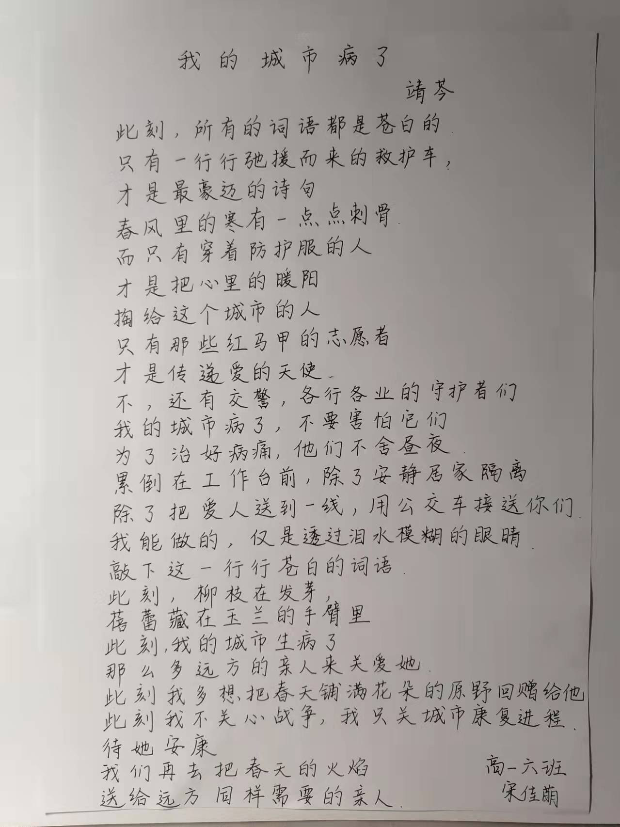 是又一场严重的疫情,让我们开启了线上教学模式,但乌云难遮月,疫情不挡春,我们坚信这场“战役”我们一定会取得胜利。看!大工附高学子用手中的笔,画出春天最美的颜色,写出疫情中人性的最善的光。