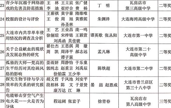 ——近几年大连市研究性学习活动评比获奖课题题目公示