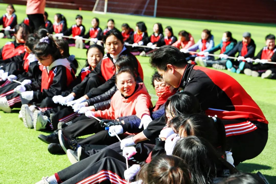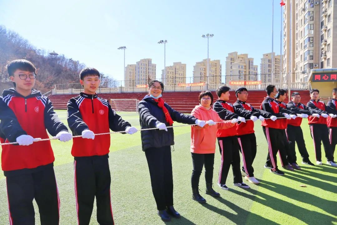 高三全体师生共同把绳子围成一个圆满富有张力的大圆。这个大圆里包含着信任,团结,感恩,坚持……大家心往一处想,劲往一处使,共同舞动手中的圆梦圈,同心同梦,共赢高考。