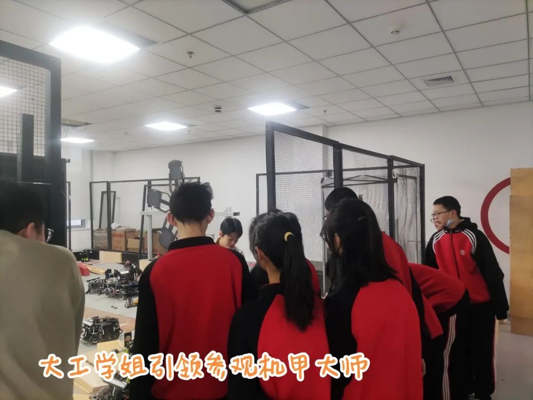 活动场地为我国大工新建的创新创业楼。在王飞龙老师的引导下,学子们依次参观了三楼与五楼的各类实验室,以及大工优秀学长学姐的研究空间。参观过程中,他们目睹了各式各样已完成制作的机器人,同时也看到了四处散落的电路板与零件。学子们更近距离地观察了机器人制作的工作台,桌上的图纸、尖嘴钳、锡丝等物品使他们直观地感受到了电路板制作的过程。