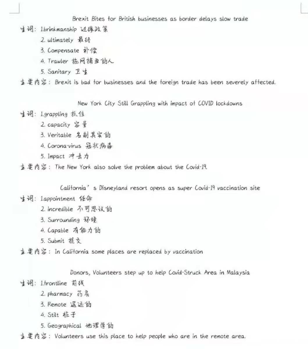 1.复习本学期范文(查找不会的单词释义+整理有用的表达方式+了解并借鉴范文的写作逻辑+翻译其中的长难句找寻句子结构);