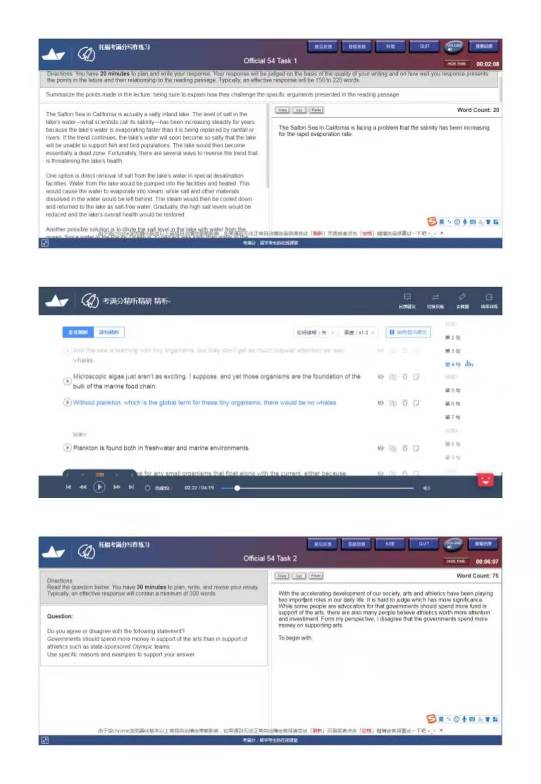 刚开始准备标化语言考试,对许多东西都很陌生,阅读和写作都比较费劲,但认真的学习技巧和做题之后,逐渐可以很好的掌握并加以运用,口语的方面也焕然一新,问题大多数都是与生活息息相关,对此感到有趣。