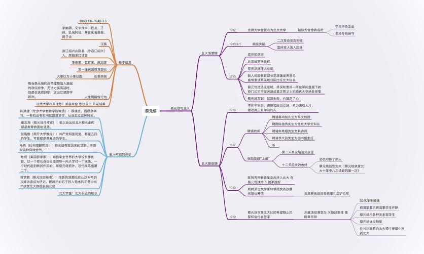 通过思维导图的方式剖析了“先生蔡元培”纪录片的脉络,清晰明了。