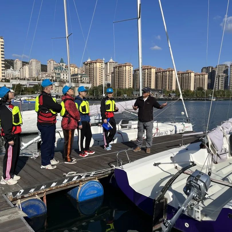 10月23日上午,我校体育组杨晓燕老师带队国际部5名帆船社学生至大连芸杉帆船航海基地,在特聘专家董小兵和许岩的指导和支持下,开展帆船博物馆研学、帆船实操等实训实践活动。本次活动从理论和实践两个角度,激发学生们对于帆船的兴趣,使从未接触过帆船运动的学生们了解帆船、爱上帆船运动,丰富学生运动选择性。